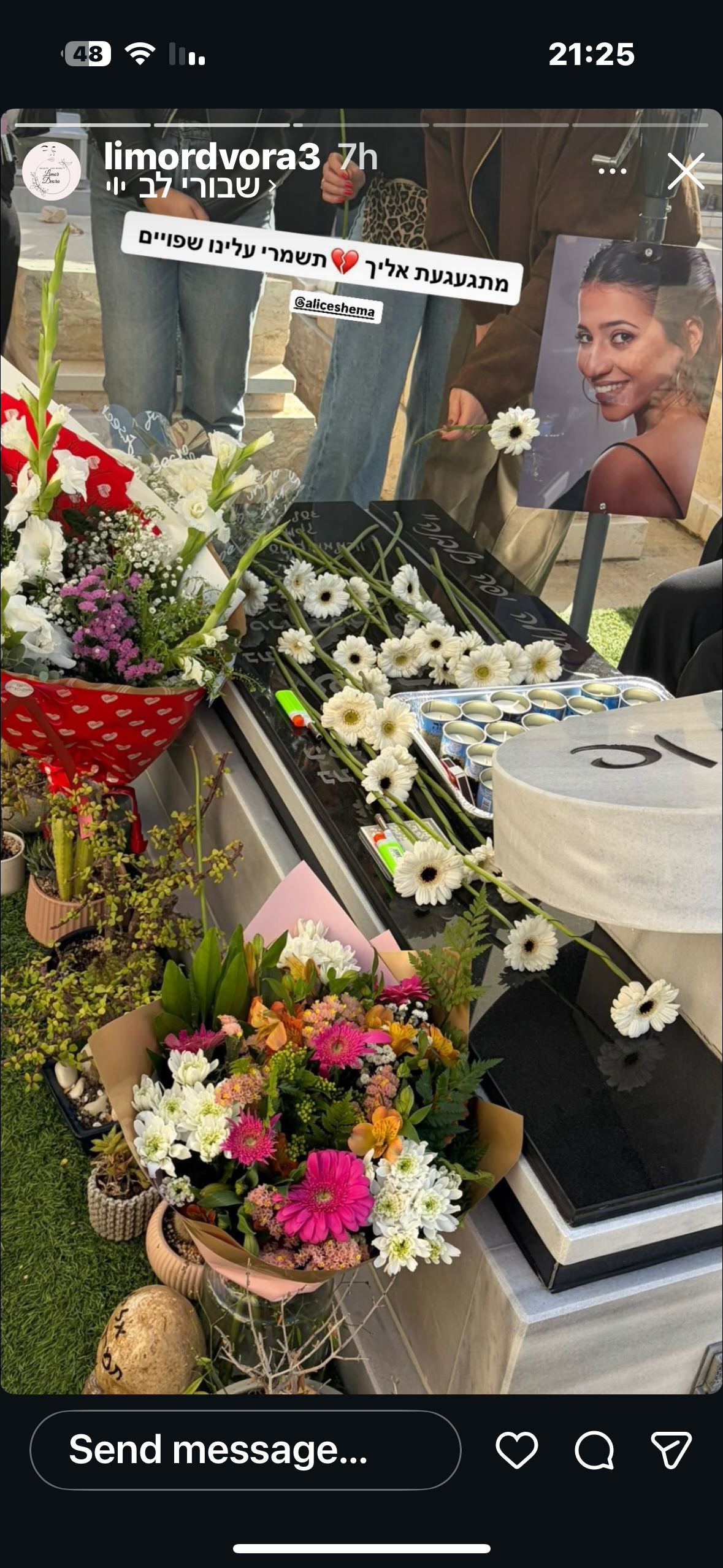 נכנסנו לתקופת חגים ואת לא פה, אני כל יום רואה תמונות שלך ומרגישה שאת כאן לא באמת מצליחה להאמין שאת לא איתנו , אני מרגישה אותך שאת נמצאת כאן,בשביל להאמין שאת לא כאן באמת אני נזכרת באותו מוצאי שבת ואז מרגישה דפיקות לב וחום בגוף ואני מנערת את בראש ואומרת דיי דיי לא רוצה להזכר באותו יום .